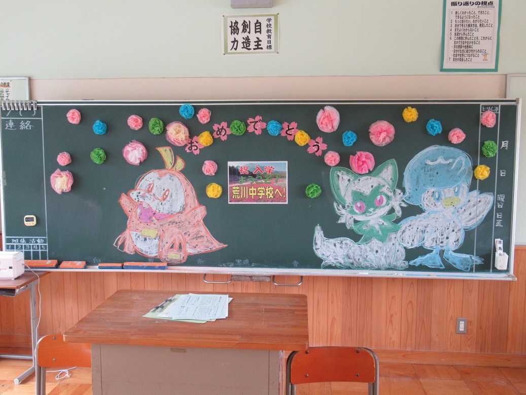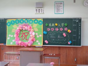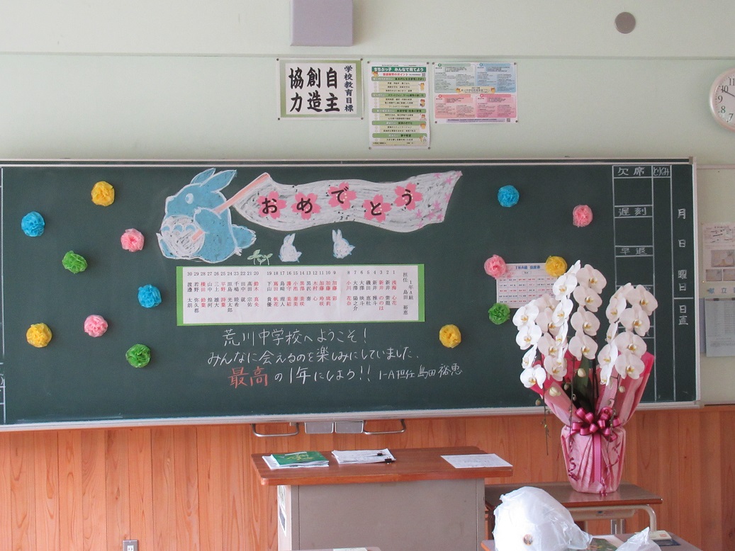各学級では入学・進級の生徒を迎えるため、担任がそれぞれに気持ちを込めて、教室の飾り付けを行いました。