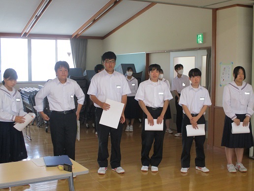 〇3年生代表:木村星稀さん『1学期は修学旅行をはじめ、とても忙しかったが充実していた。修学旅行では、全員で1つの事を創り上げる喜びを感じた。』