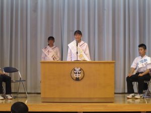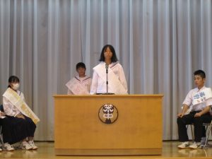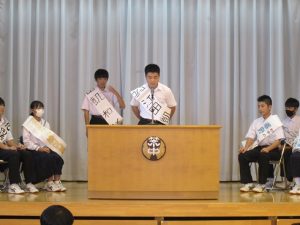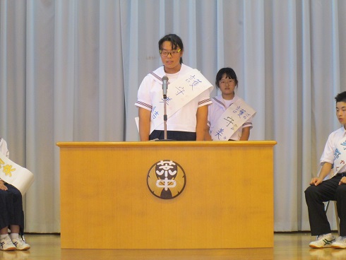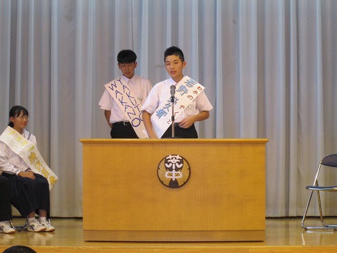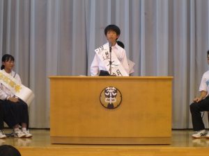 9月27日(水)第6校時に生徒会役員選挙立ち会い演説会及び投票が行われました。8名の立候補者は、荒川中を更に発展させるための具体的な方策を、気持ちを込めて演説してくれました。また全校生徒は、一人一人の演説によく耳を傾けていたと思います。新生徒会役員は1,2年生から選出されますが、このような生徒がいることに頼もしさを感じました。3年生の良さを引き継ぎ、生徒会はますます盛り上がっていきます。 ※選挙結果は9月28日(木)に校内掲示されます。