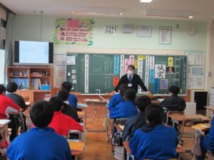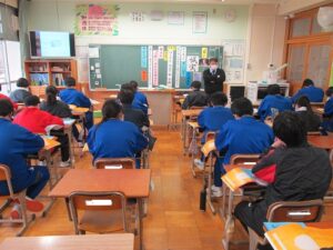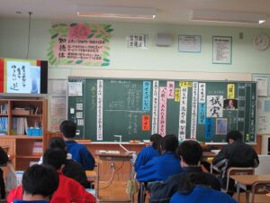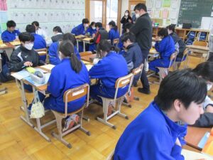 令和6年2月22日(木)今日は拠点校指導教員 根岸 力 先生に、2年A組で道徳の師範授業を公開していただきました。歌手のさだまさしさんの曲「償い」を題材にした授業でしたが、生徒は交通事故被害者と加害者のやり取りから、誠実に対応することについて深く考えることができました。授業の最後には「償い」の曲が流れ、余韻の残る授業でした。授業者の根岸先生、大変ありがとうございました。