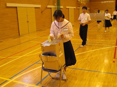 令和6年9月25日(水)本日6校時に生徒会立ち会い演説会及び役員選挙が行われました。1,2年生中心の後期生徒会を牽引していく役員選挙です。立ち会い演説会では、どの候補者もしっかりと自分の言葉で公約を語り、推薦人の3年生がフォローしてくれていました。投票結果は、明朝昇降口に掲示されます。