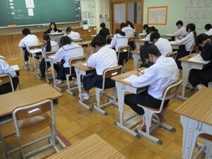 令和6年10月10日(木)今日は2学期中間テスト(国・数・社・理・英)が実施されました。各学級では、真剣に答案用紙に向かっている生徒の姿が見られました。放課後家に帰ったら、ゆっくり休んでほしいと思います。