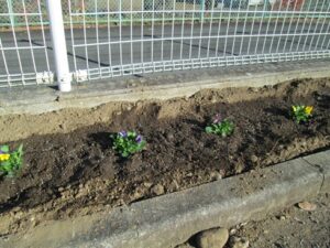 令和6年12月5日(木)今日は、校務員さんや支援員さんのサポートの下、美化委員会が花壇にパンジーを植えました。苗は秩父市太田の『花咲かせたい』の今井様から寄贈いただいたものと、業者から購入したものです。株はまだ小さいですが、5月の連休頃には花壇の土が見えないくらいに大きく育つと思います。