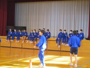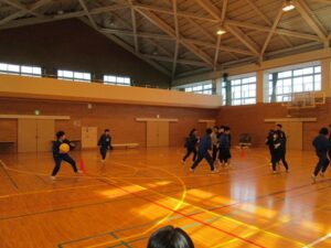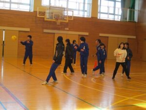 令和6年12月20日(金)今日は1,2年生合同レクのドッジボール・障害物競走大会、3年生レクのカードゲーム最弱王決定戦が行われました。1,2年生の合同レクでは、体育祭での赤・白団に分かれて、ドッジボールの同学年対決、異学年対決で大いに盛り上がっていました。また、3年生レクでは、ついにカードゲーム最弱王が決定したようです。一番下の写真中央に座る、黒い服を着た人が『最弱王』の称号を手にした人です(笑)。