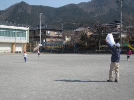 5校時に、1年生が生活科の学習の一環で、たこあげをしました。地域の方が講師として来校していただきました。一人一人のたこには、自分の思いが詰まった絵が描かれており、そのたこが空へ舞い上がると、うれしそうな歓声を上げていました。