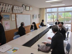 4月26日(水) 第1回学校運営協議会を開催しました。委員の皆様にはご多用のところご来校いただきまして誠にありがとうございました。委嘱状の交付、学校経営方針の承認、授業の参観等行っていただき、本校の教育活動についてのご意見等をお話しいただきました。委員の皆様からの貴重なご意見をこれからの活動に生かして参りたいと思います。