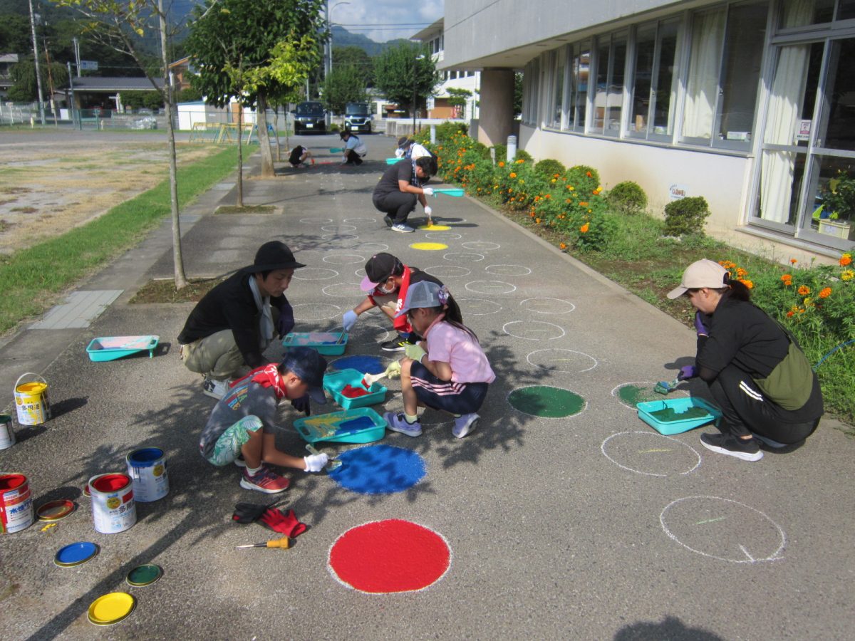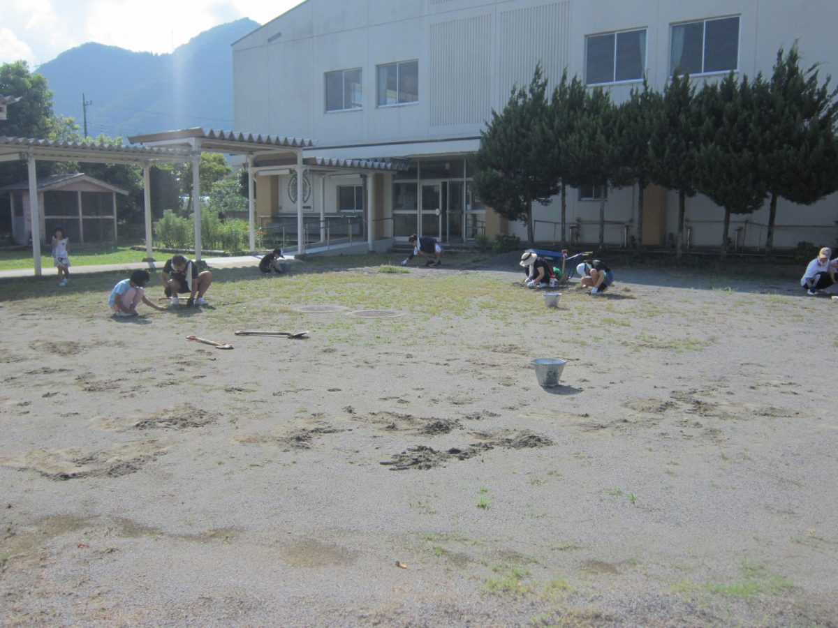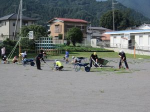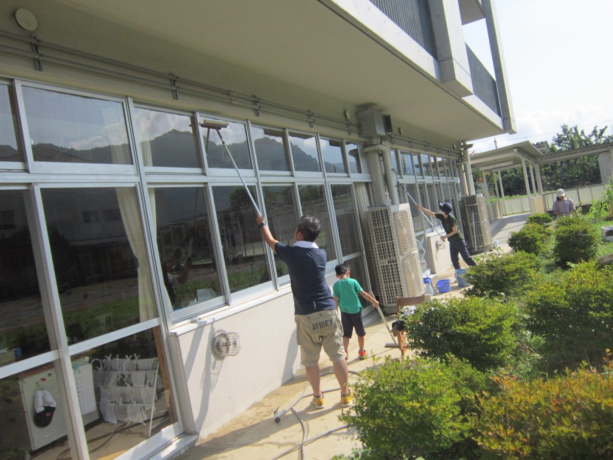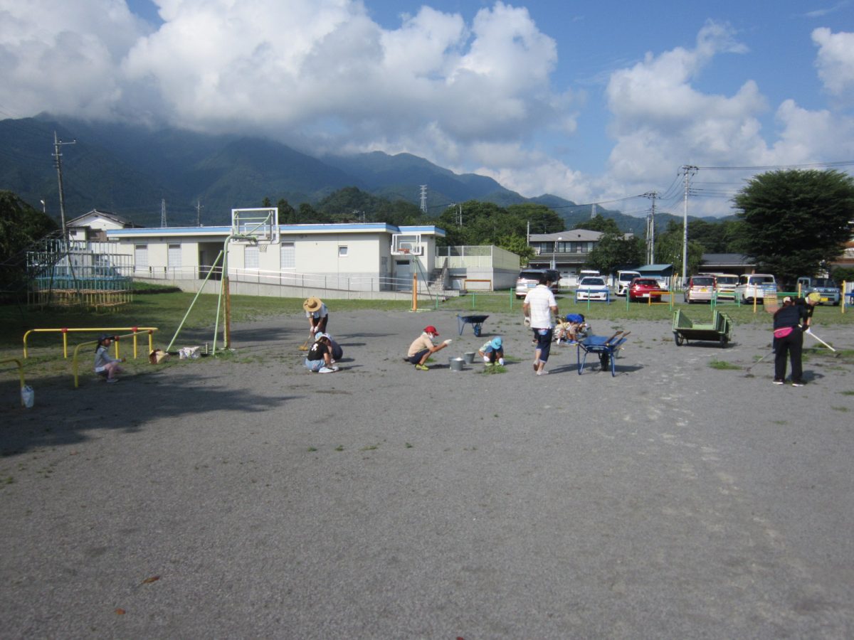 8月19日(土) PTA親子ふれあい作業が行われました。校庭の除草や遊具のペンキ塗り、教室の窓ガラス・扇風機の掃除等を行っていただきました。おかげさまで2学期が気持ちよく迎えられそうです。PTAの皆様、暑い中たいへんありがとうございました。