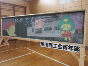 4月9日(火) 令和6年度の入学式を行いました。10名のかわいい新入生を迎えました。新1年生の皆さん、保護者の皆様、本日は誠におめでとうございました。荒川商工会青年部の皆様から今年もお祝いの黒板アートを設置していただきました。たいへんありがとうございました。