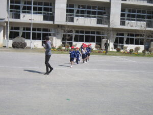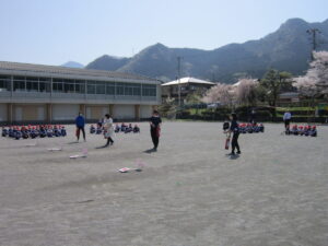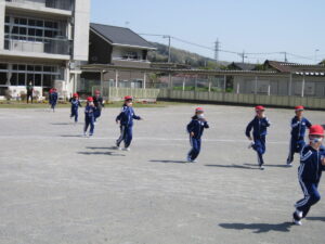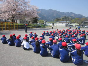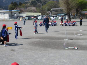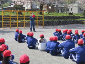 4月15日(月) 避難訓練を行いました。新学期になって初めての訓練です。教室からの避難経路を確認し安全に避難することができました。今回は消防署の方にも通報から初期消火の様子や避難の様子を見ていただき指導をいただきました。最後に消火器による消火訓練も行いました。