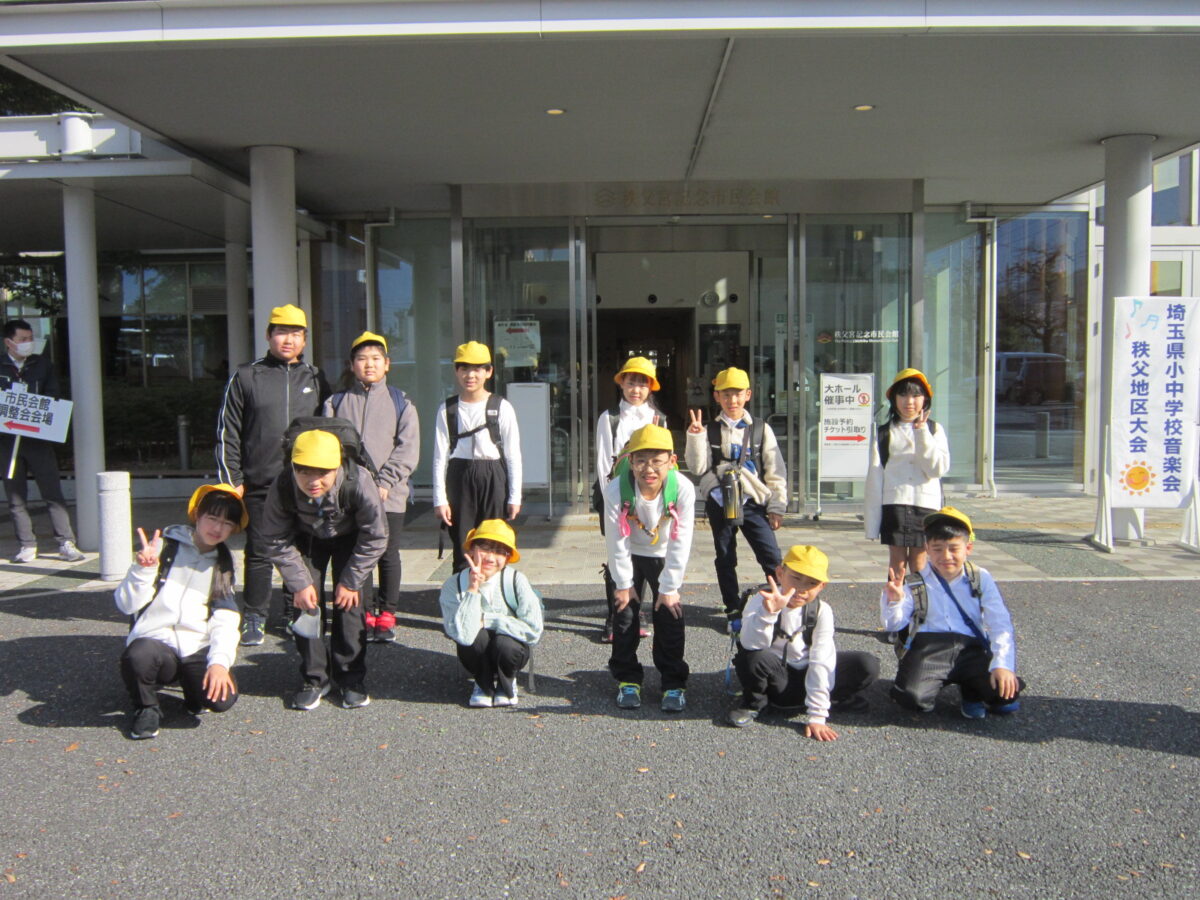 11月1日(金)埼玉県小中学校音楽会秩父地区大会が開催されました。荒川東小学校からは5年生が学校の代表として出場しました。器楽の部プログラムno. 1番で「銀河鉄道999」を演奏しました。大きなステージで緊張があったと思いますが、練習の成果が発揮されしっかりと自分たちの持てる力を発揮しました。秩父宮記念市民会館での発表は大きな自信となりました。 ※ホール内での写真撮影は禁止されていたため、外での写真のみですがご了承ください