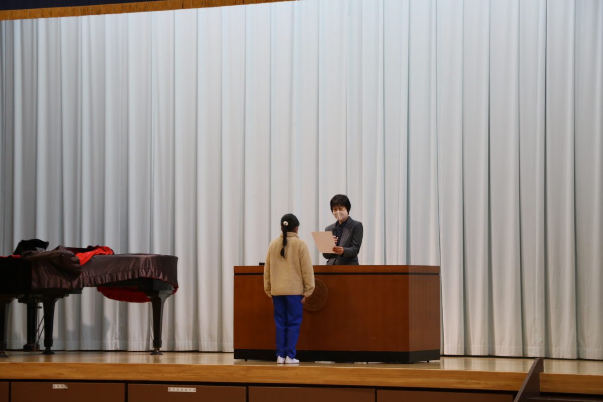 12月13日(火)音楽朝会がありました。1・2・3年生がステージに立ち、今月の歌「帰りの会のサンバ」を踊りながら歌ってくれました。その後には、全校で「帰りの会のサンバ」を踊って歌いました。朝からとても楽しい気持ちになることができましたね。最後に、夏休みにあった武甲山の作文と図画コンクールの賞状伝達がありました。代表児童は立派に賞状を受け取ることができました。