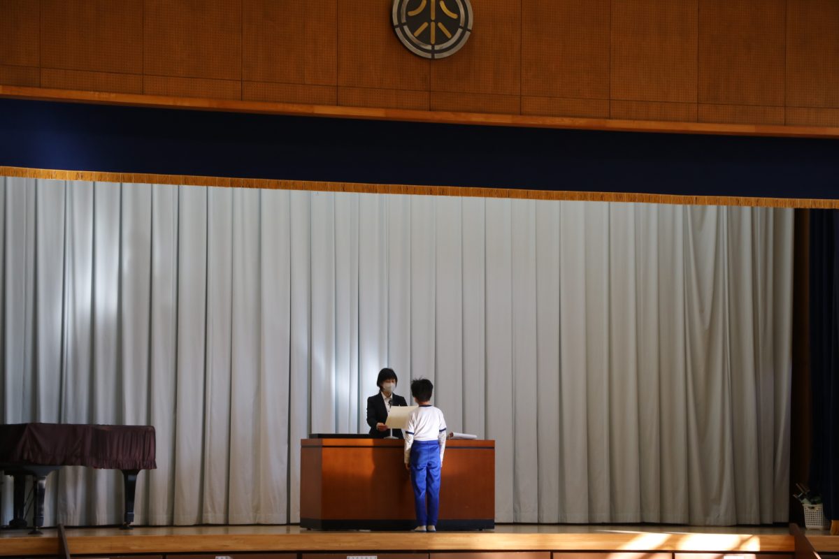 最後に山口先生から、児童生徒美術展の表彰がありました。児童はしっかりとした態度で賞状を受け取ることができました。