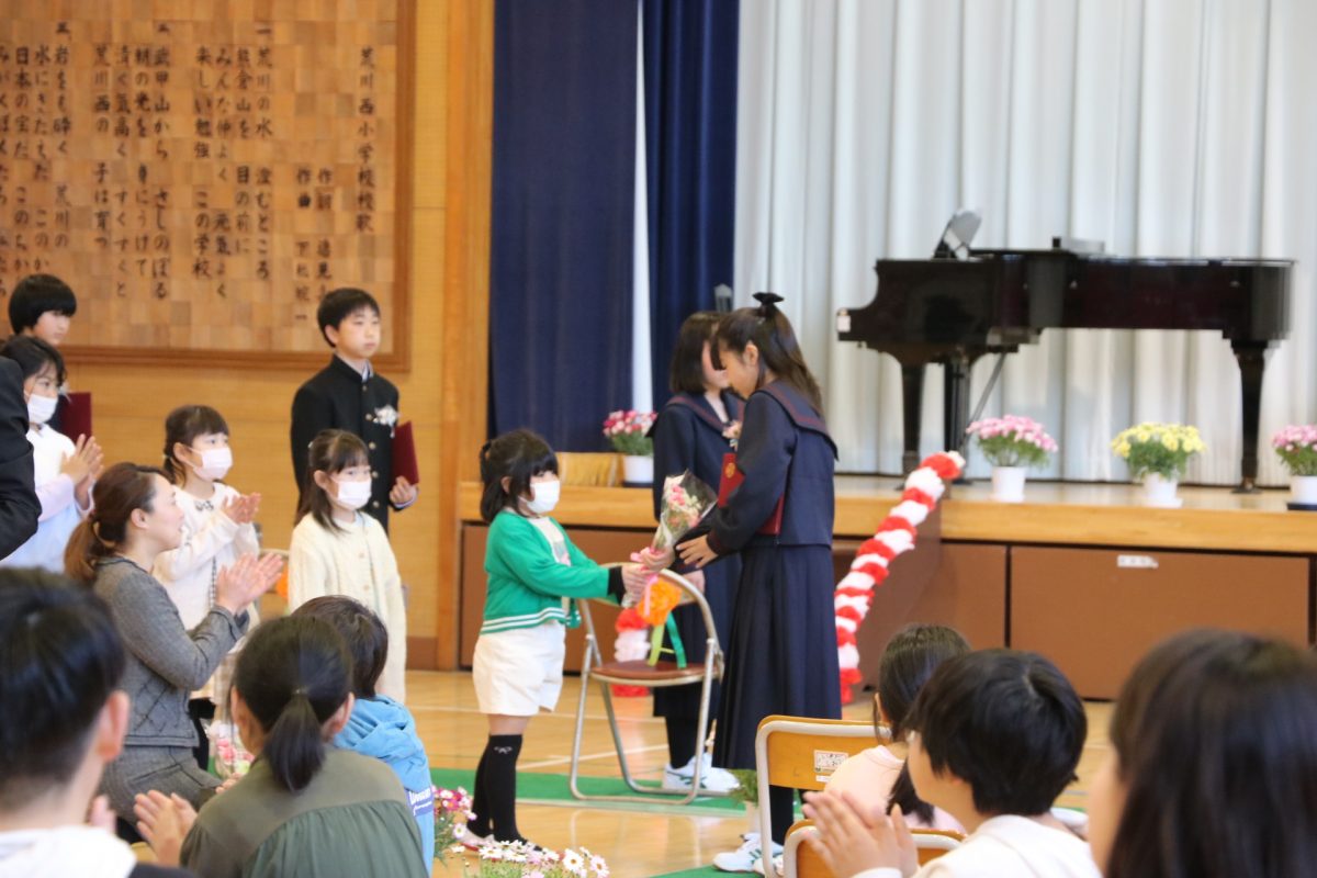 3月22日(水)令和4年度卒業証書授与式を行いました。保護者・地域の皆様に支えられて、卒業の日を迎えることができました。会場には、サプライズで荒川商工会青年部からの黒板アートを飾らせて頂きました。今年度は、全校児童が参加して卒業生をお祝いし、感謝の気持ちを込めて拍手で見送りました。卒業生のみなさん、おめでとうございました。