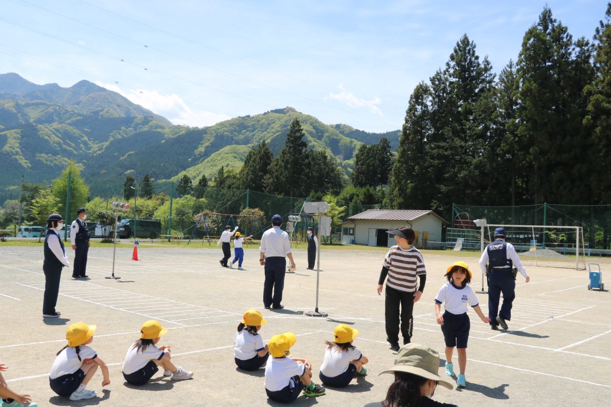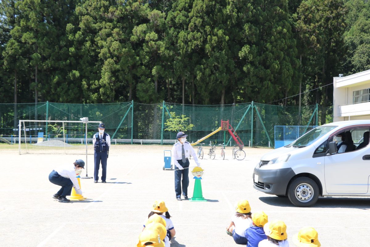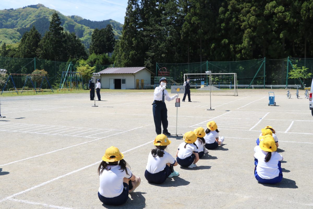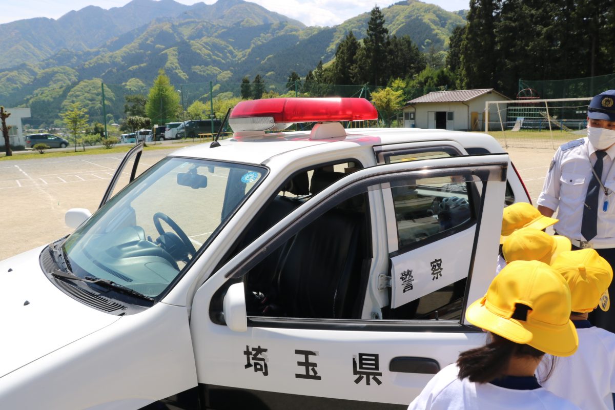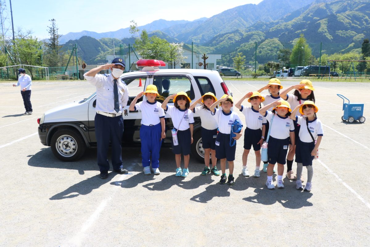 4月19日(水)交通安全教室がありました。秩父警察署、秩父市役所市民部市民生活課、三峰口駐在所、大滝駐在所の方に講師として来ていただきました。信号機の色や車のランプの色、車の運転手からは見えない死角や、前のタイヤが通ったところより後ろのタイヤが内側を通る内輪差を学びました。そして、横断歩道の渡り方を確認し、一人ずつ実践しました。授業が終わった後は、パトカーに乗せていただきました✿講師のみなさん、お忙しい中ありがとうございました。