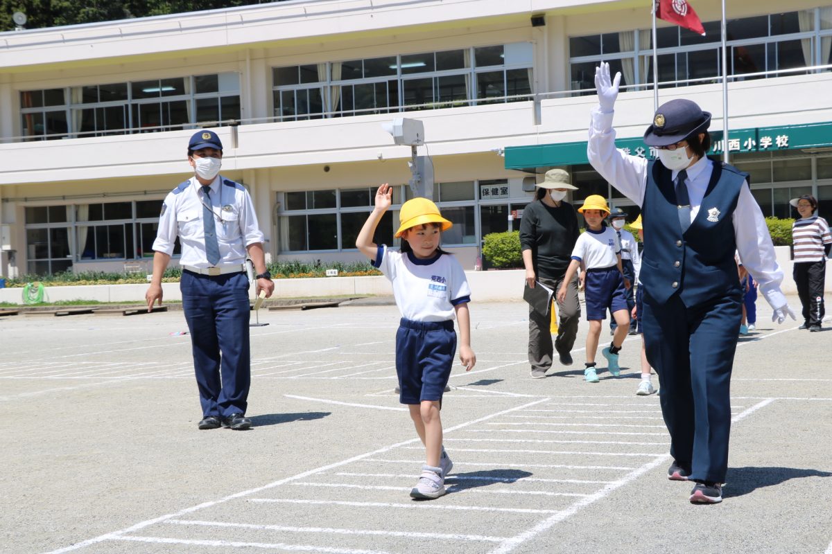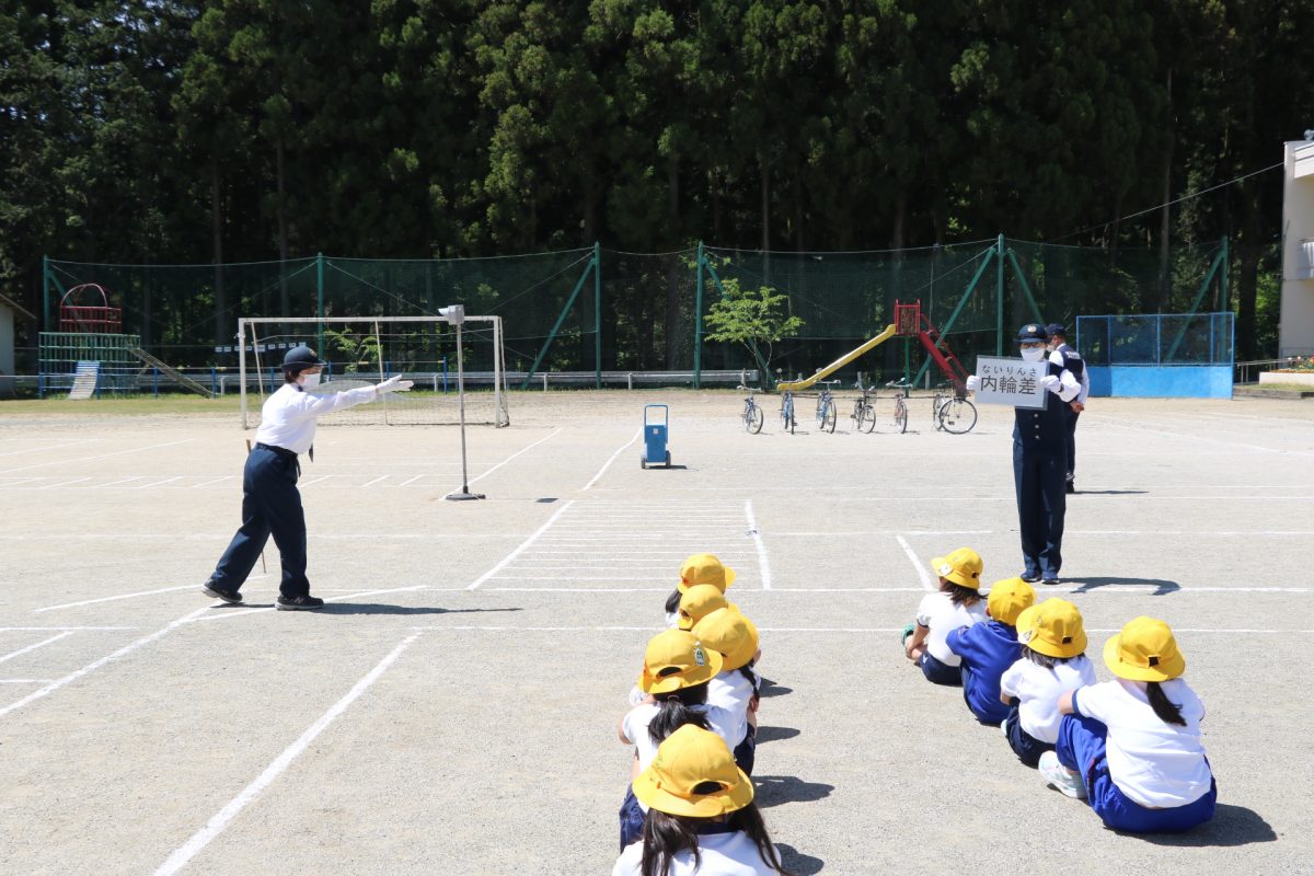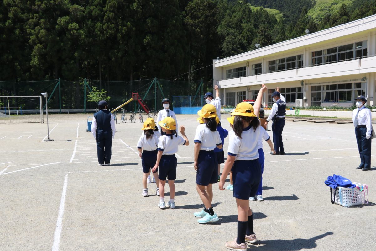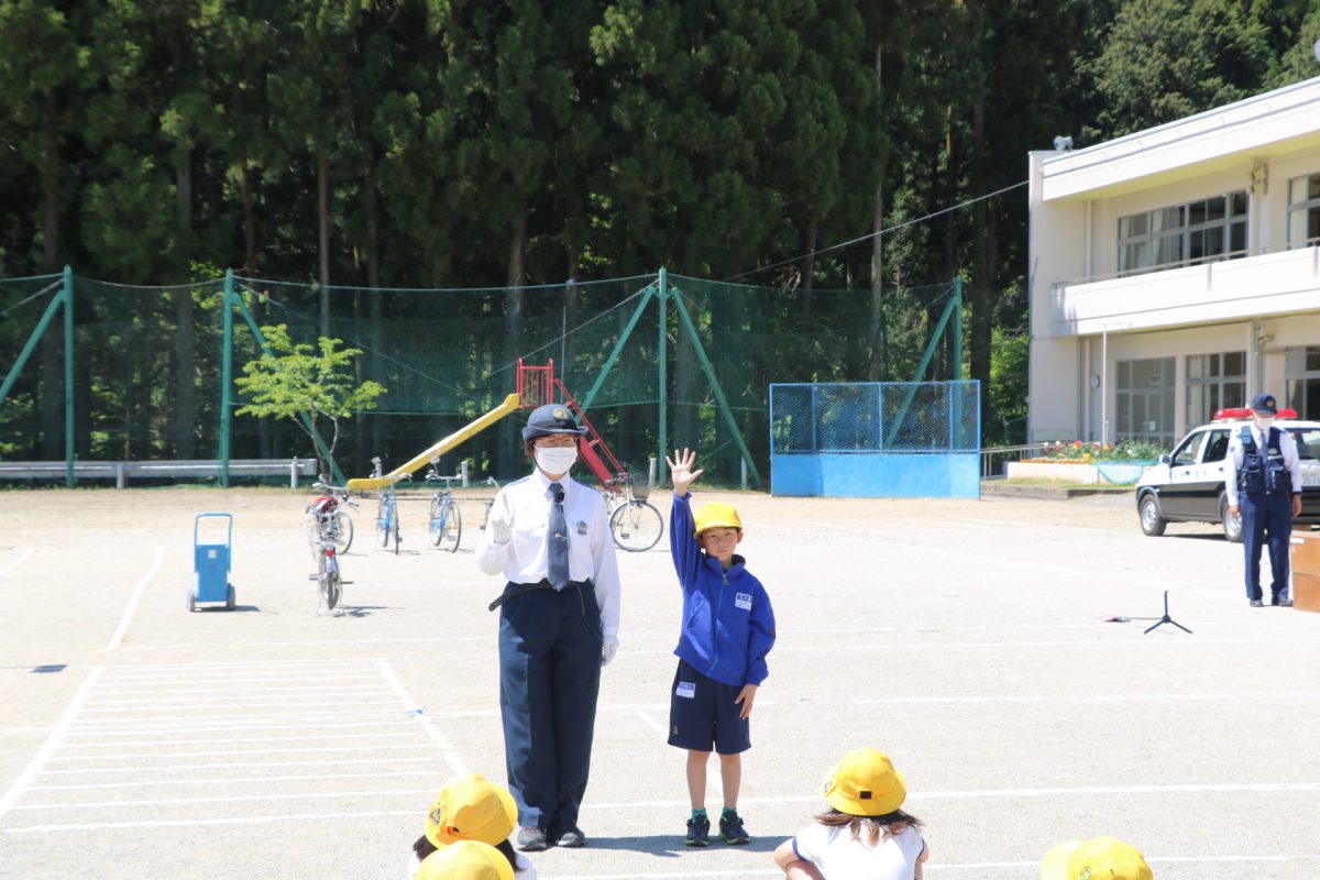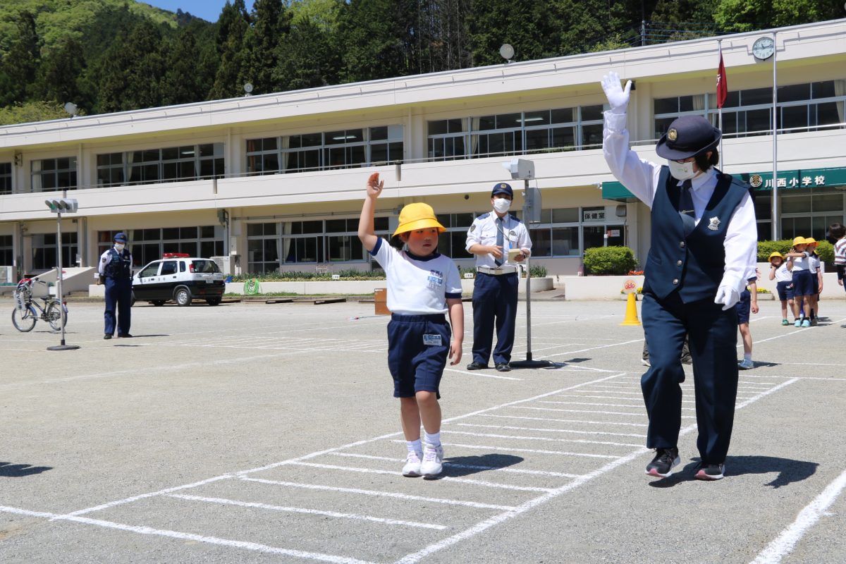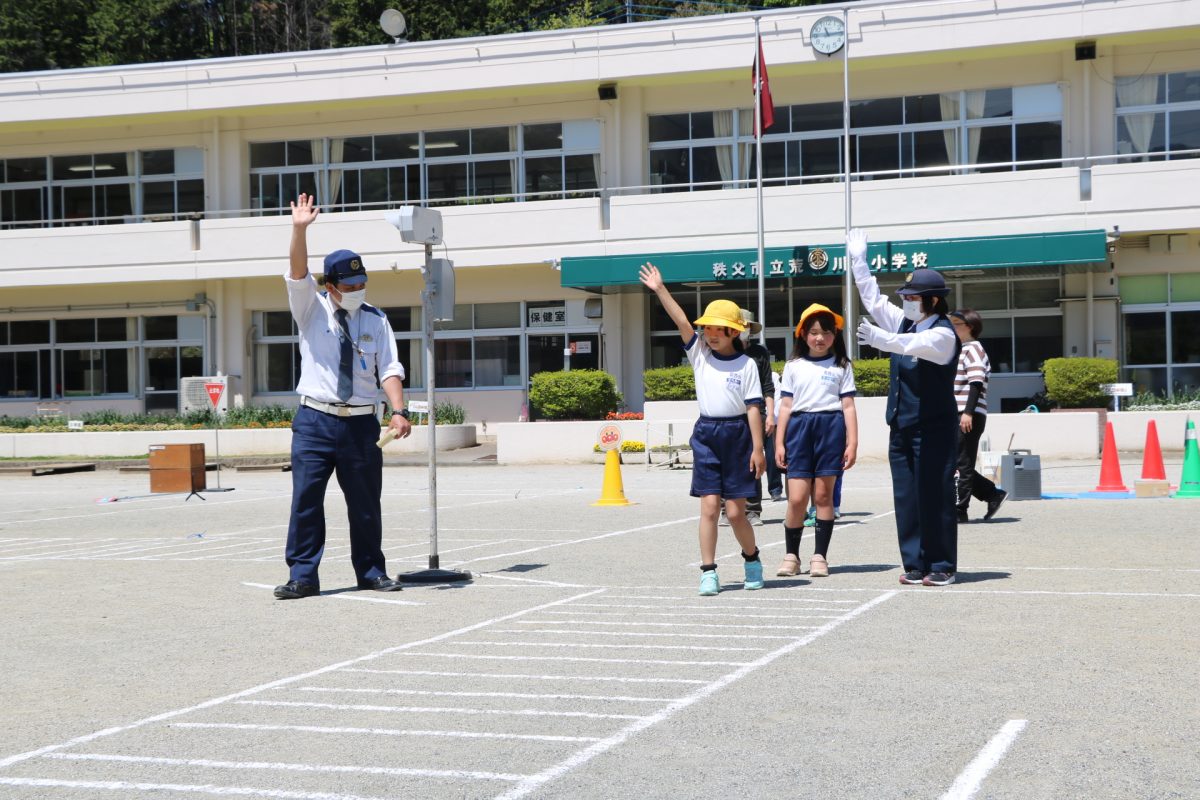 4月19日(水)交通安全教室がありました。秩父警察署、秩父市役所市民部市民生活課、三峰口駐在所、大滝駐在所の方に講師として来ていただきました。信号機の色や車のランプの色、車の運転手からは見えない死角や、前のタイヤが通ったところより後ろのタイヤが内側を通る内輪差を学びました。そして、横断歩道の渡り方を確認し、一人ずつ実践しました。授業が終わった後は、パトカーに乗せていただきました✿講師のみなさん、お忙しい中ありがとうございました。