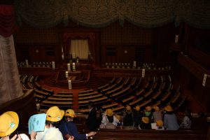 5月19日(金)5・6年生が科学技術館と国会議事堂に社会科校外学習に行きました。保護者の皆様には早朝より見送りやお弁当の準備をありがとうございました。科学博物館ではさまざまなしかけがある展示をたくさ見学することができました。大きなしゃぼん玉体験や犬小屋などの錯覚体験もでき、楽しく学ぶことができました。国会議事堂では、参議院の本会議場を見学しました。長い廊下やたくさん並んだ委員会室、中央広間なども見学し、スケールの大きさを感じました。行き帰りのバス内レクや、帰りの会での一人一人の感想発表もしっかりできました。全員で協力し、楽しく行って来られ、とても良い校外学習になりました。