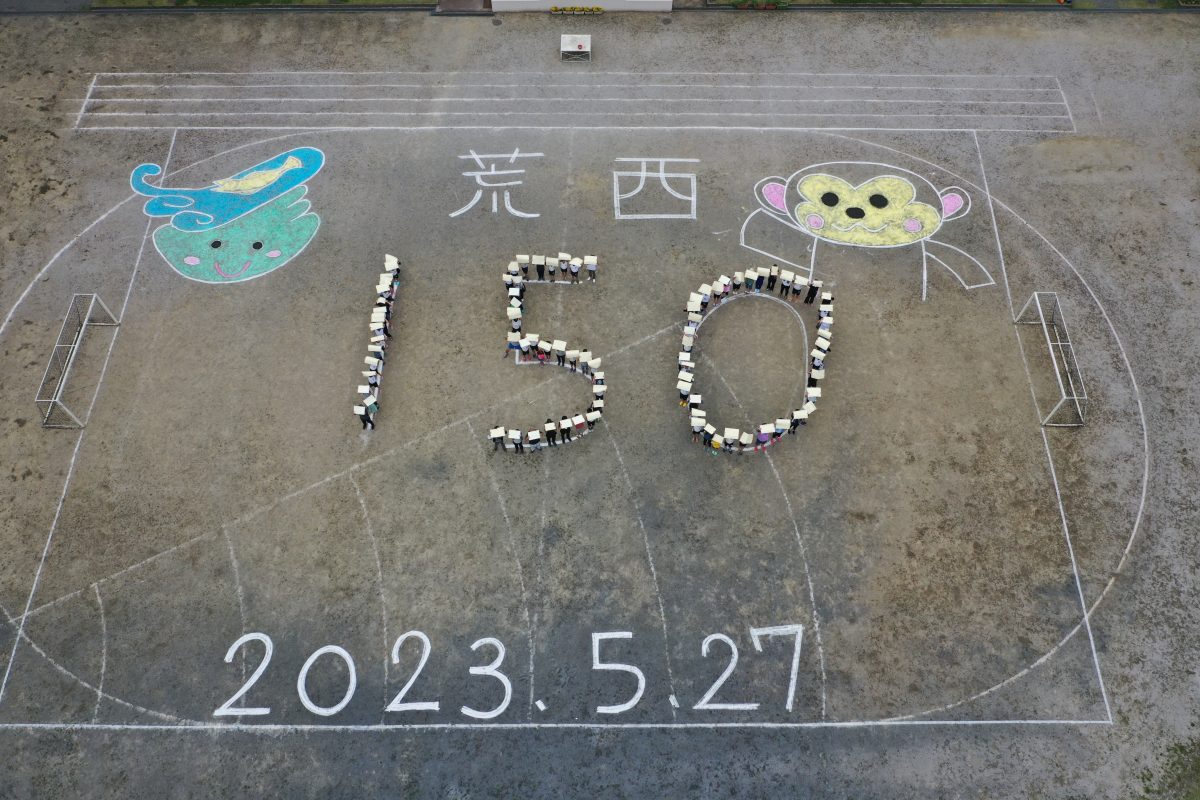 5月27日(土)ドローン撮影を行いました。150周年を記念して、児童、保護者、教職員でドローン撮影を行いました。校庭には今年度決めた、学校のイメージキャラクターを描き、全員で「150」の形をつくりました。児童会のみなさん、取りまとめありがとうございました。