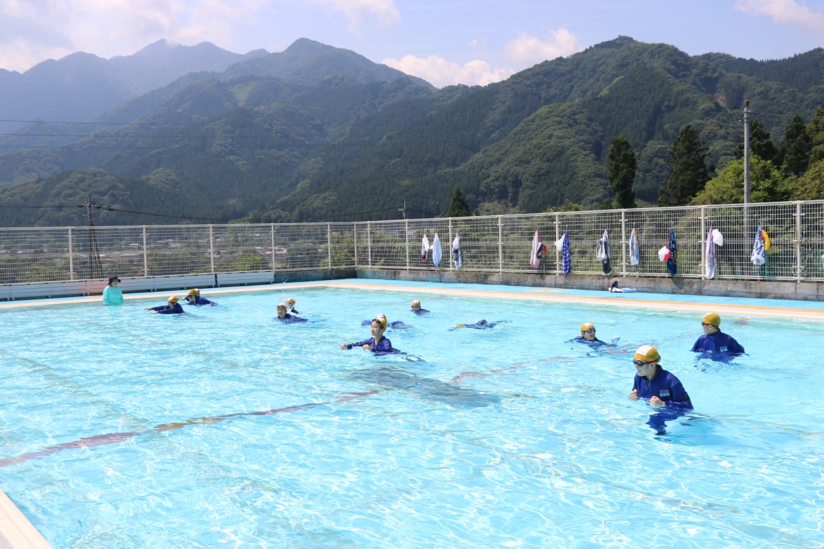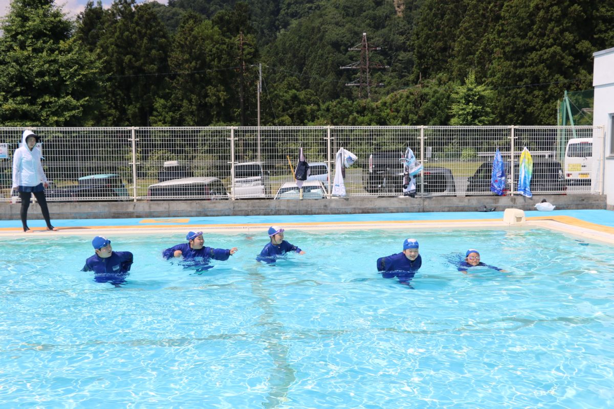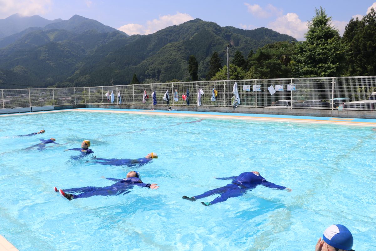 7月4日(火)5・6年生が着衣泳を行いました。水着の上にジャージを着て、靴を履き、プールに入る体験をしました。普段の生活の中で水に落ちてしまうことを想定し、ゴーグルをつけずにプールの中に落ち、プールサイドに戻ってくる練習をしました。水中で体を浮かす方法や、ペットボトルを使って体を浮かす方法を学びました。