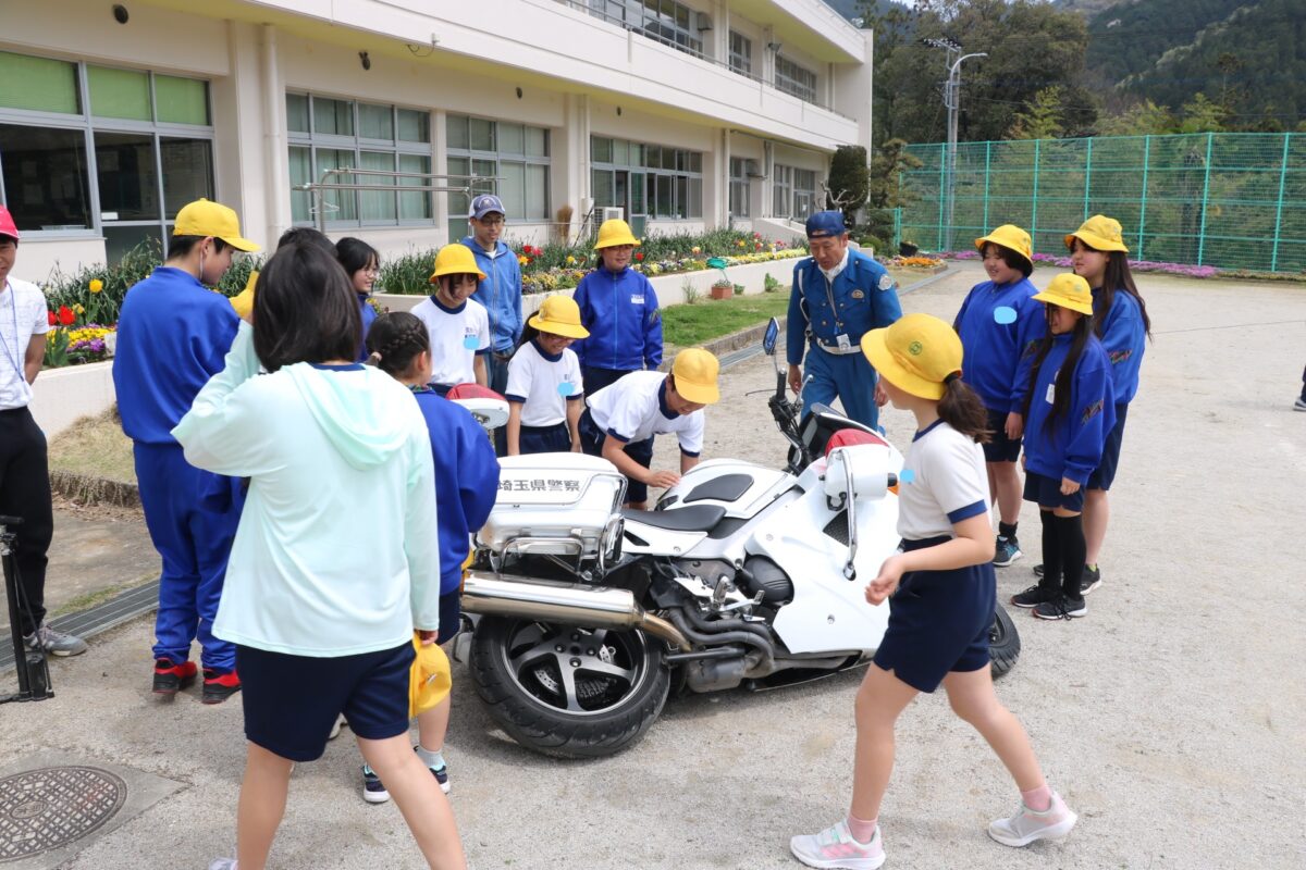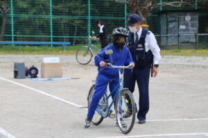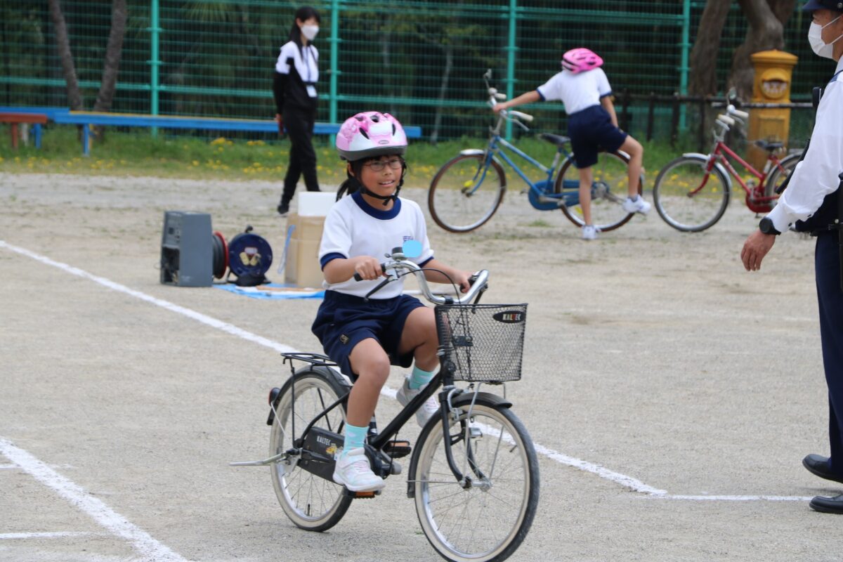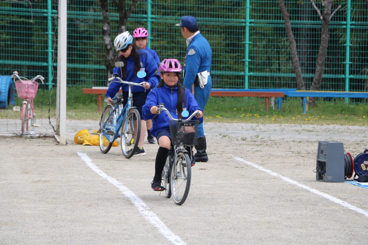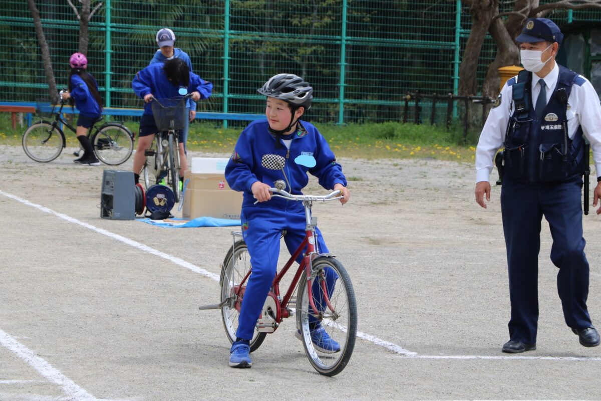 4月16日(火)交通安全教室がありました。5・6年生は自転車免許の試験を含めた自転車の乗り方を勉強しました。警察署の方から、「確認の声が素晴らしい!」「お友達を応援する声が素晴らしい!」と沢山のお褒めのことばをいただきました。自転車免許の技能面では、全員合格。この後、筆記のテストがあります。