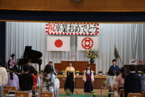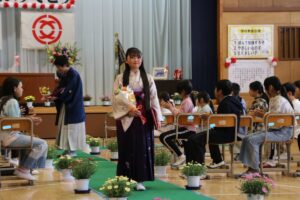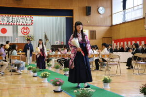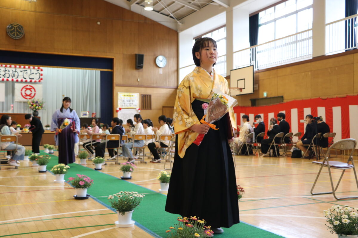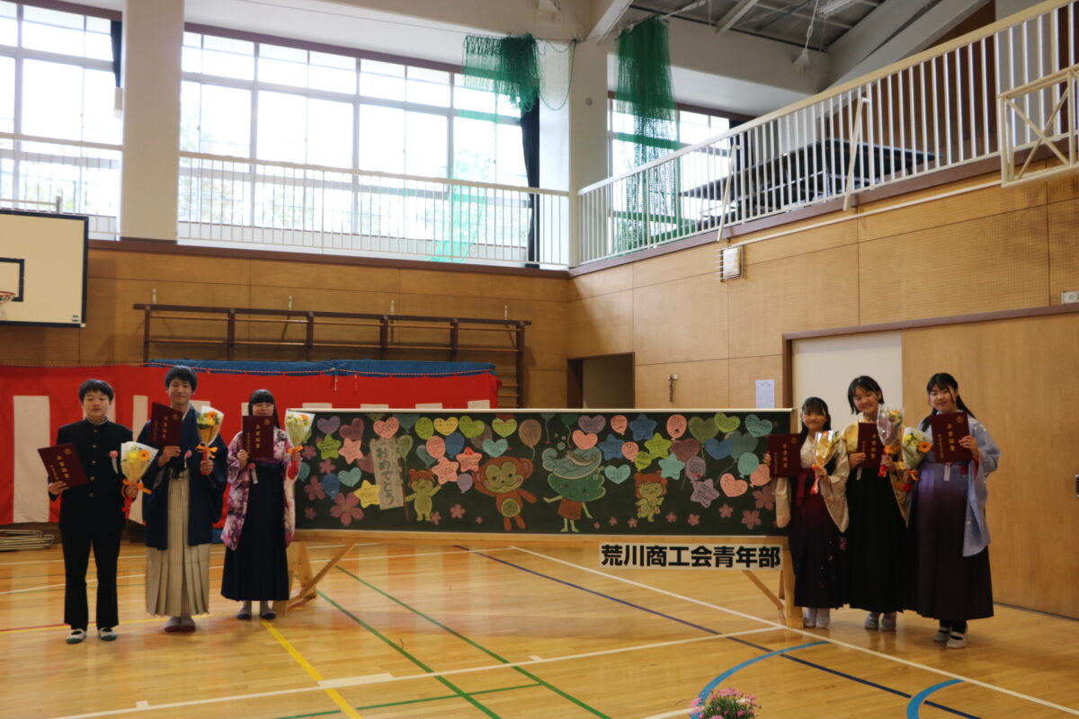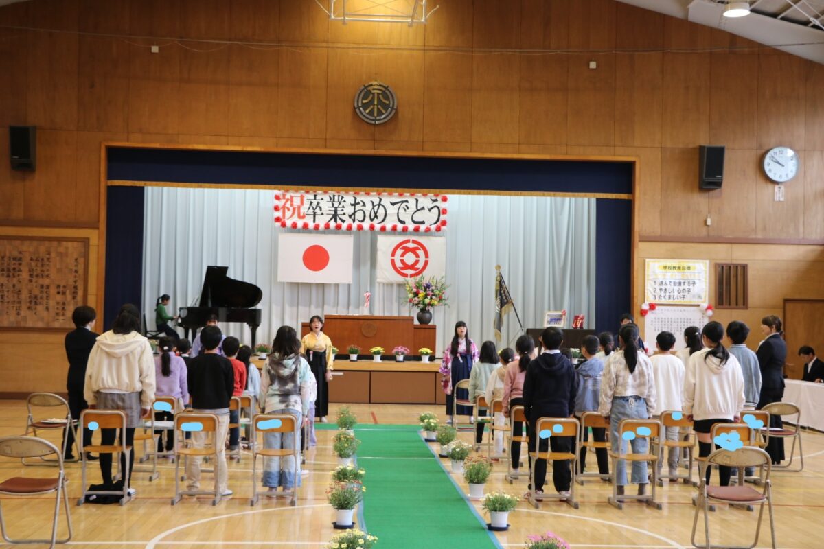 3月24日(月)令和6年度卒業証書授与式を行いました。保護者・地域の皆様に支えられて、卒業の日を迎えることができました。会場には、荒川商工会青年部からの黒板アートを飾らせて頂きました。黒板アートには、在校生・教職員からのメッセージを添えさせていただきました。卒業生全員、しっかりとした態度で式に臨むことができました。卒業生のみなさん、おめでとうございました。