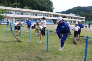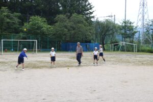 6月6日(金)今年度はじめての外でのチャレンジタイムを行いました。低中高に分かれて、50m走や鉄棒、ボール投げなど交代しながら行いました。朝の涼しい時間帯を利用して、元気に取り組みました。