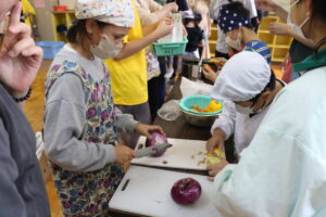 6月14日(土)西小まつりが行われました。午前中の前半は、子どもたちがお店を考え運営しゲームを行いました。輪投げ、お化け屋敷、豆拾いなどいろいろなお店のゲームを楽しみました。後半は、カレー作りをしました。具材のじゃがいも、にんじん、たまねぎ、にんじんは、本校で子どもたち育て収穫したものです。保護者の方に手伝ってもらいながら協力して作り、美味しいカレーを作ることができました。どの班もカレーは残さず食べていました。