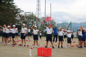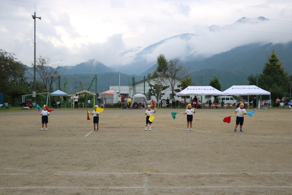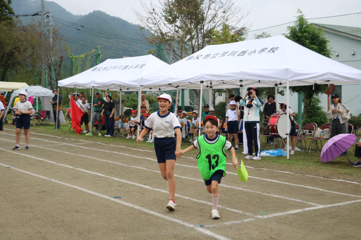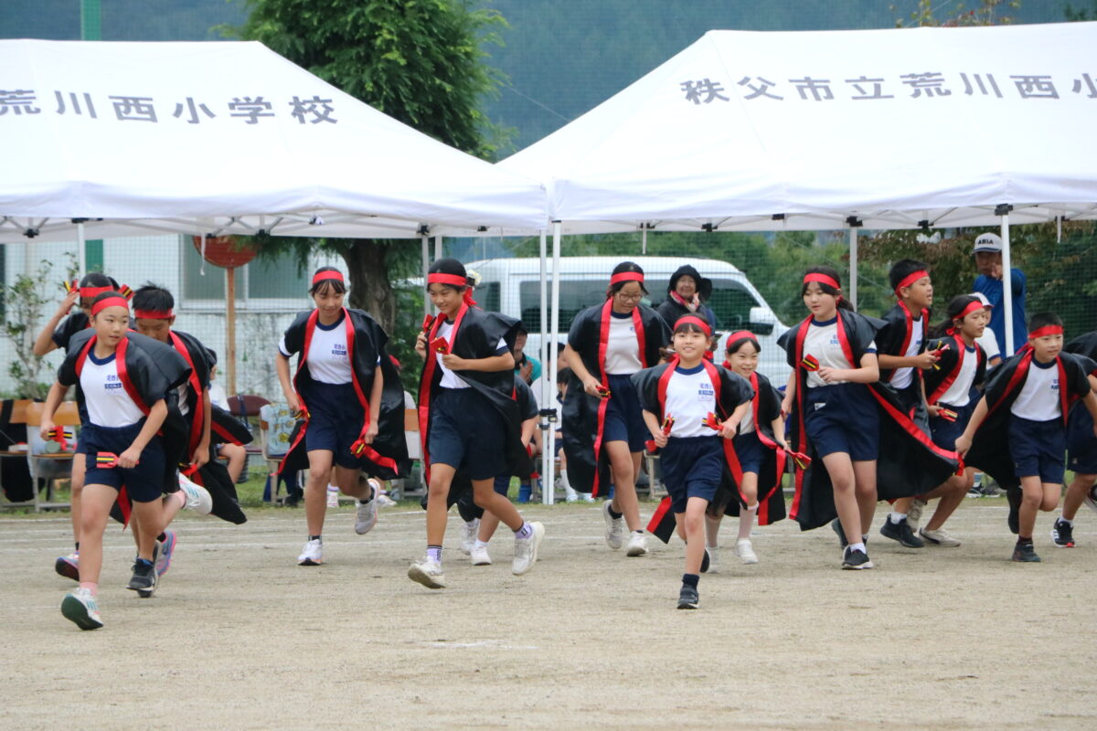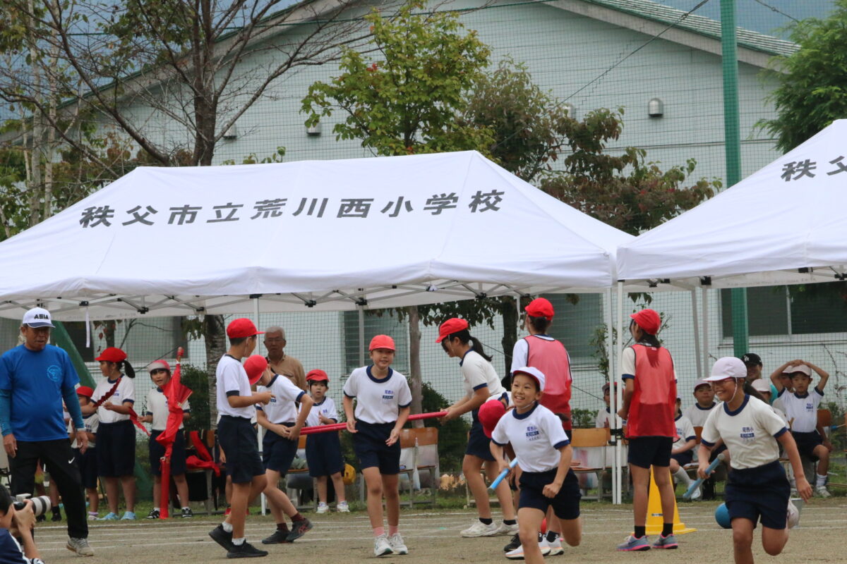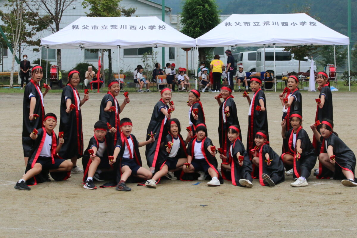 10月4日(土)荒川西小学校運動会が開催されました。応援合戦の後、学年の得点種目が始まりました。赤組も白組も力を合わせ、勝利を目指して頑張りました。また、得点種目の間には、低学年と高学年の表現(ダンス)も行われました。低学年は可愛らしさあふれるダンスを見せてくれました。高学年は動きに一体感があり迫力ある動きを見せてくれました。どちらも会場をとても沸かしてくれました。