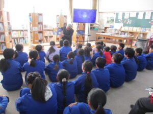 朝読書の時間を使って、職員によるお話会を開きました。今年度5回目の今日は木村先生。