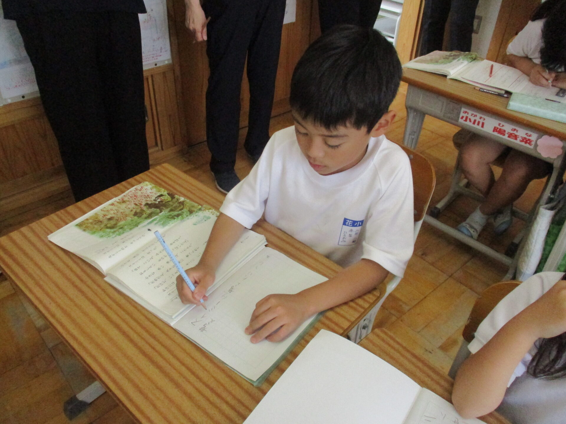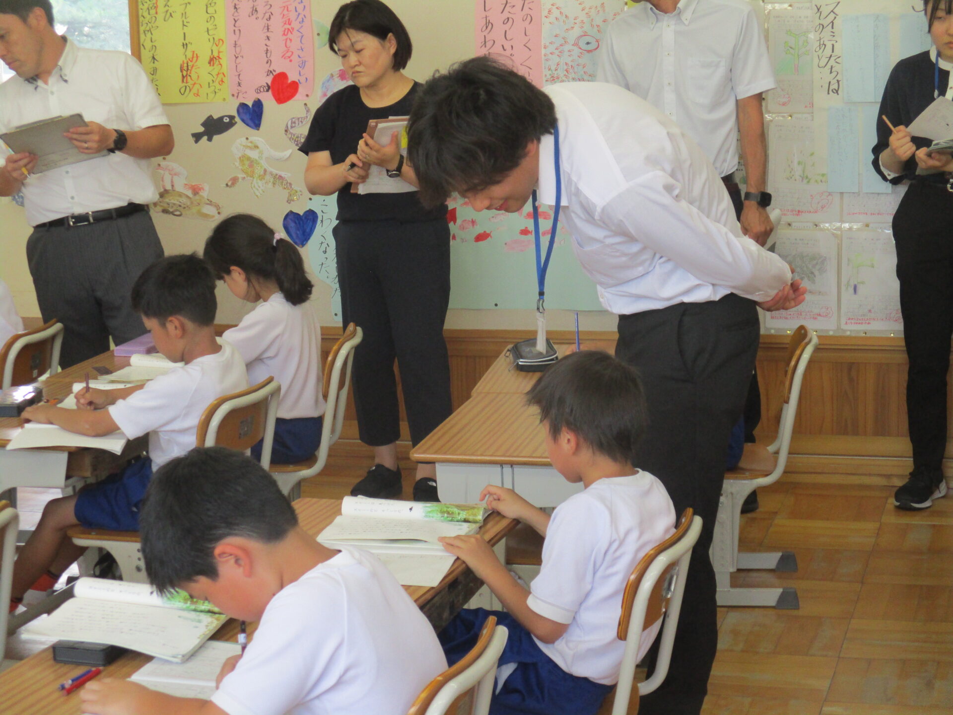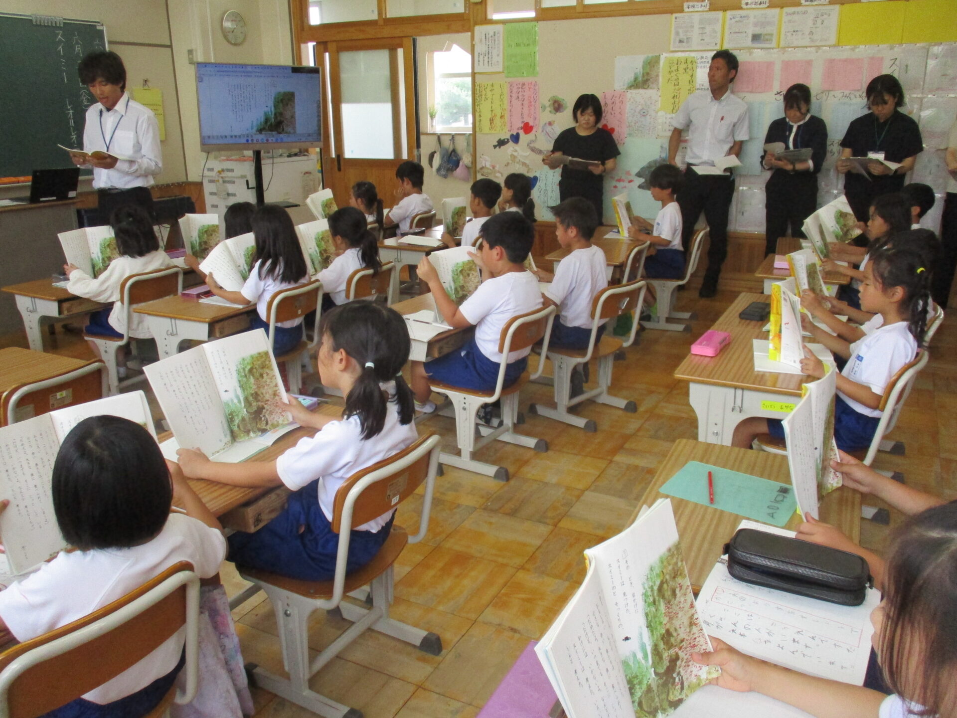 本日は、秩父市教育委員会より、指導者として、指導主事 中山 明俊 様を お招きし2年2組で国語の研究授業を行いました。単元名は、かの有名な「スイミー」。子供たちは少し緊張した様子でしたが、本文を根拠にスイミーの心の変化についてよく考え発表し合っていました。本校では「主体的・対話的で深い学び」を目指す授業展開の工夫を研究主題に掲げ今年度研究を進めております。そして「対話力を向上させ、共に学び合う授業づくりをめざして」おります。研究授業後には、職員の皆さんで研究授業について熱心に協議が行われ、さらに子供たちにとって価値ある授業をするために様々な提案がなされました。最後には、中山 明俊 様から、子供の実態や教育の最新動向を踏まえた非常にていねいでわかりやすいご指導をいただきました。明日からの本校の教育活動に生かしてまいります。大変ありがとうございました。