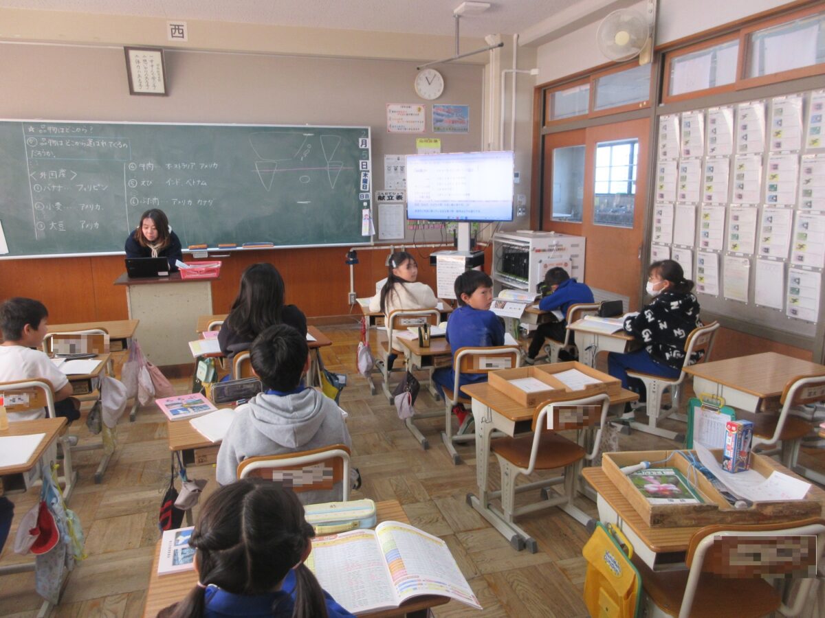 普段、自分たちがスーパーで買う品物がどこから来ているのかを調べました。「思ったより、外国からきている品物が多い!」と子供たちからは驚きの声が上がりました。