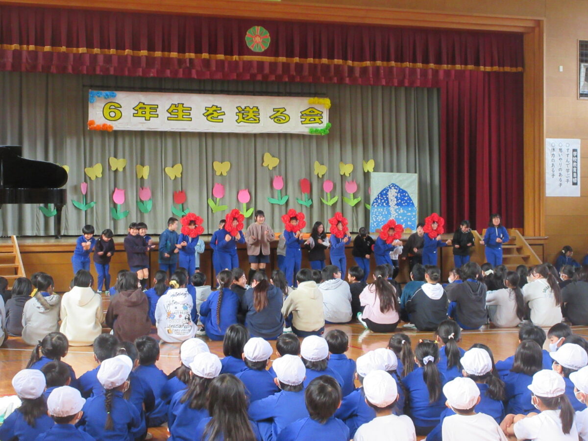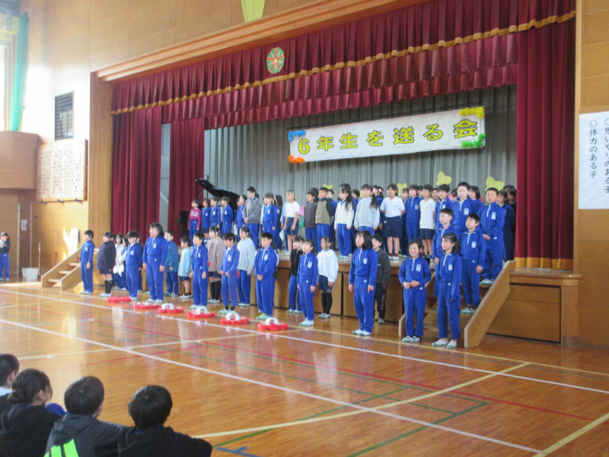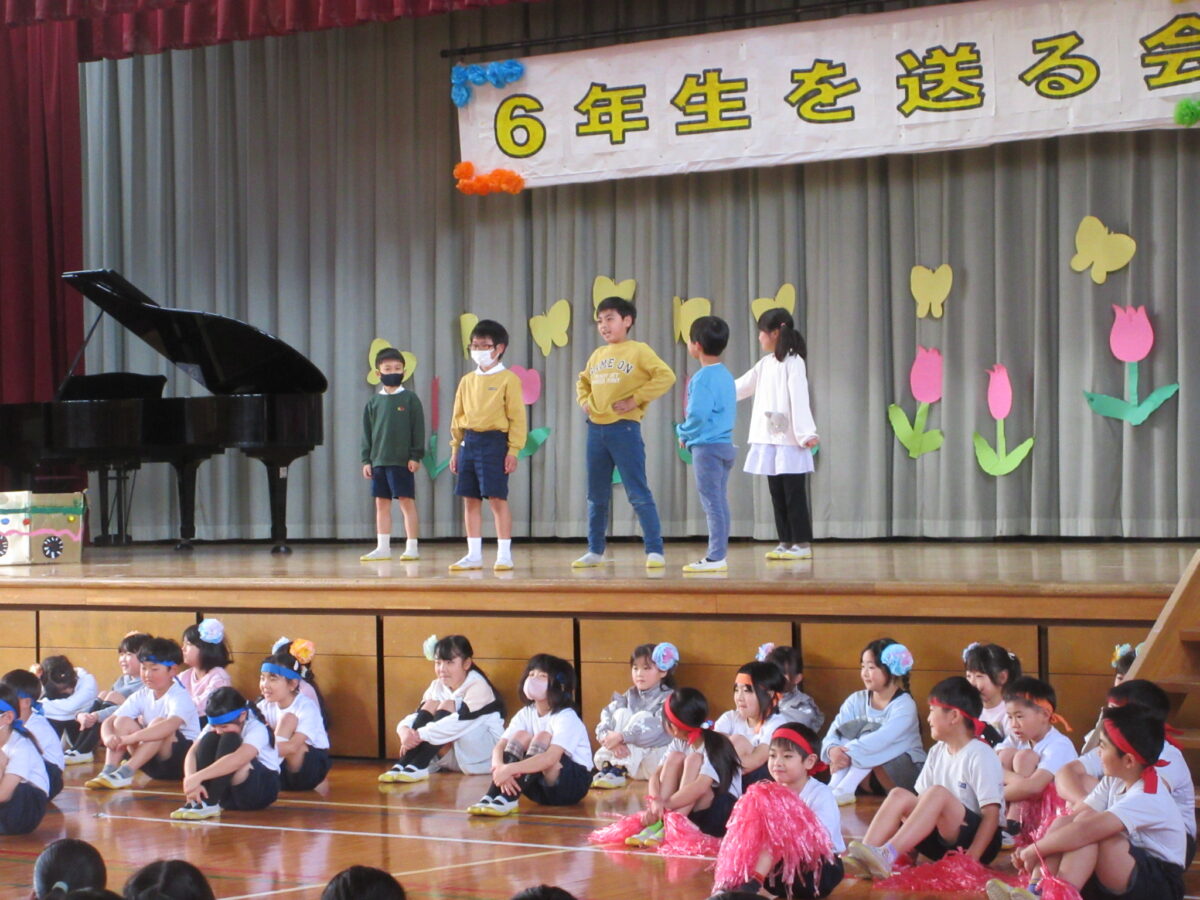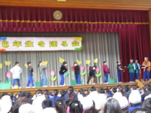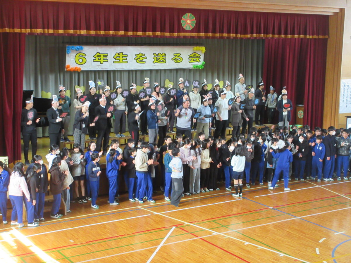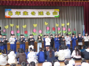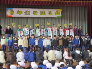 1年生から5年生は、6年生に向けて「優しくしてくれた」「応援してくれた」「リードしてくれた」と今までの感謝を伝え、「かっこいい6年生‼ 中学校へ行ってもがんばってください」と締めくくりました。