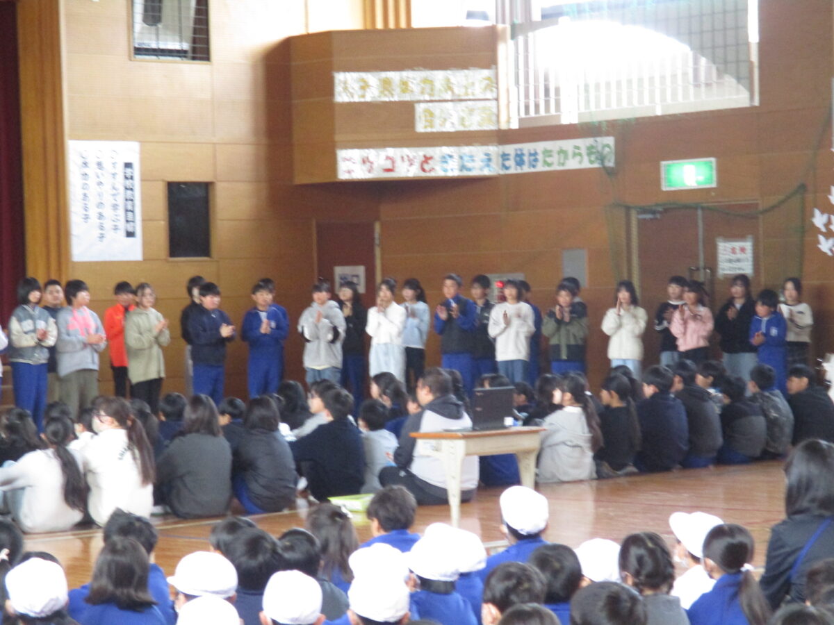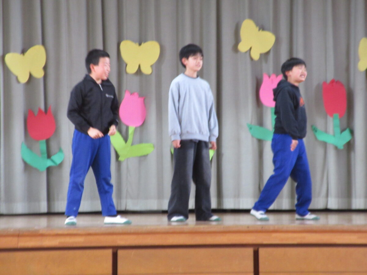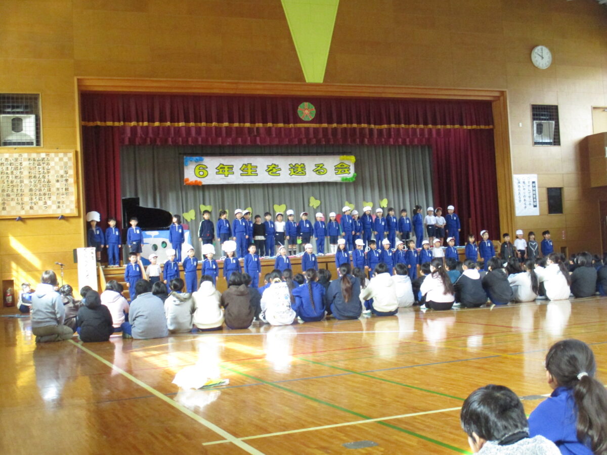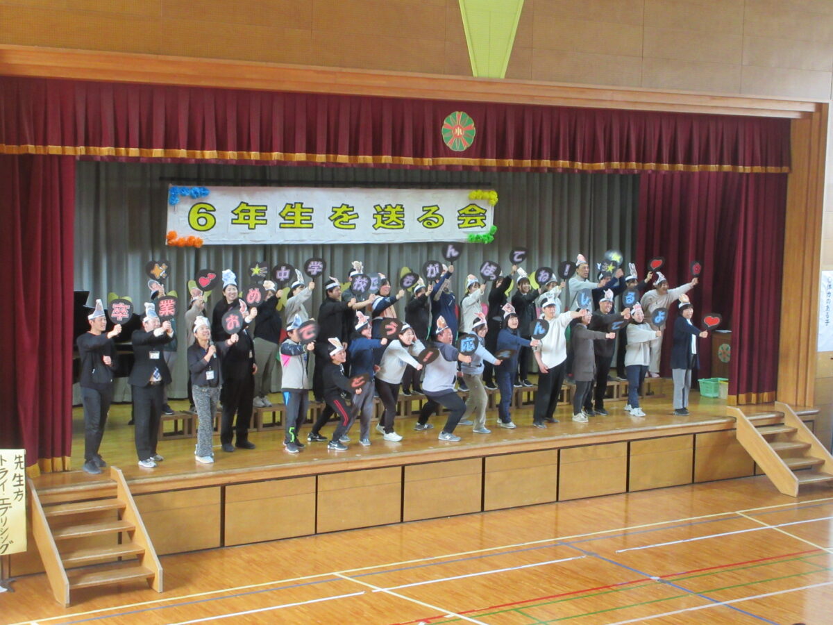 1年生から5年生は、6年生に向けて「優しくしてくれた」「応援してくれた」「リードしてくれた」と今までの感謝を伝え、「かっこいい6年生‼ 中学校へ行ってもがんばってください」と締めくくりました。