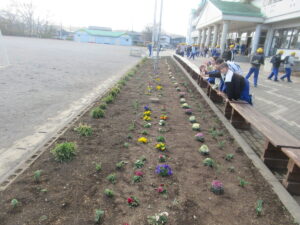 2.陽差しも暖かく昨日は恵みの雨が降りました。春になるのを花壇のお花たちも心待ちしております。