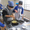 今、6年生は家庭科で「まかせてね今日の食事」の学習に取り組んでいます。食事作りで大切なこと(買い物の仕方や栄養バランス、環境への配慮など)を学習した後、献立を考えたり調理実習を行います。写真は、6年1組の調理実習の様子…