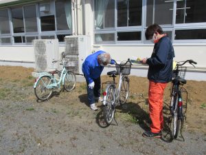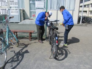 生徒の安全を守るため、通学や部活動等で利用する自転車の点検を行いました。
