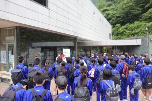 予定どおりに出発式を終え、バスに乗車し、最初の目的地である浦山ダムに向かいました。ダムについての説明を聞いた後、班別行動を行いました。