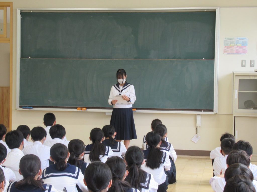 3年生は、昨日の学総体予選(陸上競技)で県大会出場権を獲得した生徒の紹介、現在の学級の様子の紹介、そして進路指導主事から第1回進路希望調査の結果を踏まえ、進路についてのお話がありました。