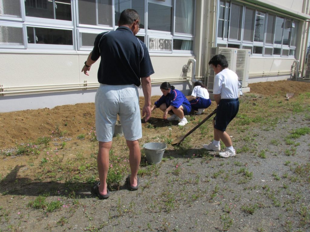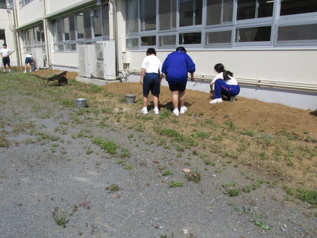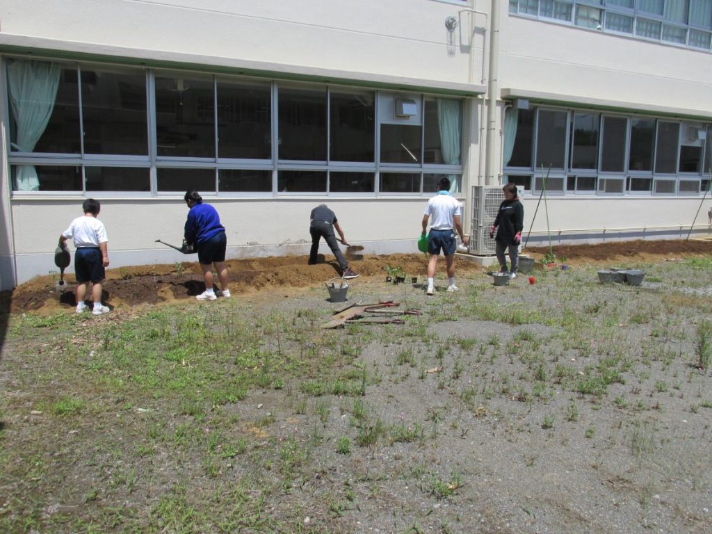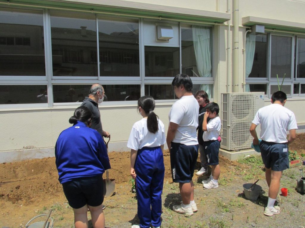 C・D組の生徒たちが、授業の一環として野菜を作りました。