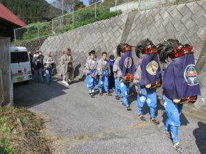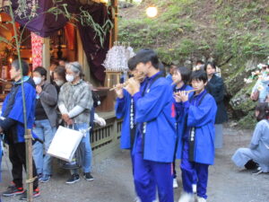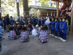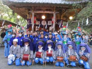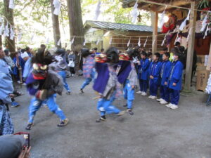 28日(土)に浦山地区の大日堂で「大日如来縁日」が始まり、総合的な学習の時間で学習している「浦山の獅子舞」を披露しました。