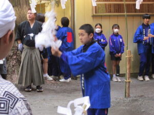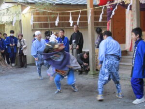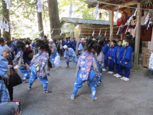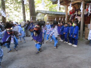 浦山大日堂獅子舞保存会の皆様の舞に続き、中学生の獅子舞が披露されました。