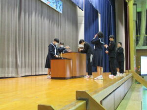 選択生徒による三味線演奏に始まり、浦山の獅子舞披露、そして合唱コンクール、コーラス部合唱、英語弁論、生徒代表者会議の報告など、日頃の学習の成果を存分に発揮した「生徒主体」の素晴らしい文化祭となりました。