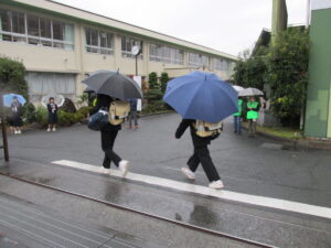 あいにくの雨の中でしたが、元気に気持ちのよいあいさつを交わすことができました。