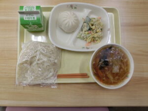 中華めん、広東めん、彩の国肉まん、ツナのごまマヨサラダ、牛乳