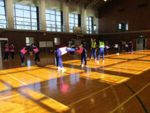 本校では、先生方が授業を公開し、お互いに参観し合い意見交換をすることで、授業力を向上させる取組を行っています。今回は、採用3年目の教員が行う県のジャンプ・アップ研修(所属校研修)の一環として、3年生の保健体育科の「ダンス」(現代的なリズムのダンス)という単元で授業を行いました。生徒は4チームに分かれ、何度も話合いながらチームの創作ダンスを考えていました。授業の最後には、曲に合わせ、自分たちで考えたダンスを楽しそうに踊っていました。単元の最後に行う発表会が楽しみです!