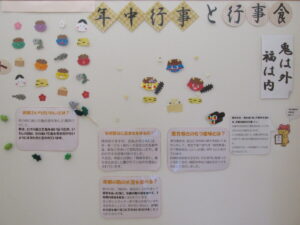 新年を迎えて早くも1か月が経過しました。新年早々、能登半島地震や航空機事故があり、多くの皆様が犠牲となられたり被災をされたり、未だ困難な状況が続いています。改めてお亡くなりになられた方々のご冥福をお祈りするとともに被災された皆様にお見舞い申し上げます。1日も早い復興を心よりお祈り申し上げます。さて、明日から2月、3日(土)は節分、4日(日)は立春です。校内に季節を感じさせる掲示物が見られ、改めて時の流れる早さを実感しています。生徒のみなさん、卒業・進級まであっという間ですよ!