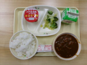 【本日のメニュー】ごはん、ハヤシライス、グリーンサラダ、ヨーグルト、牛乳※本年度、最後の給食となりました。栄養士、調理員、配膳員の皆様、1年間、美味しい給食をありがとうございました。