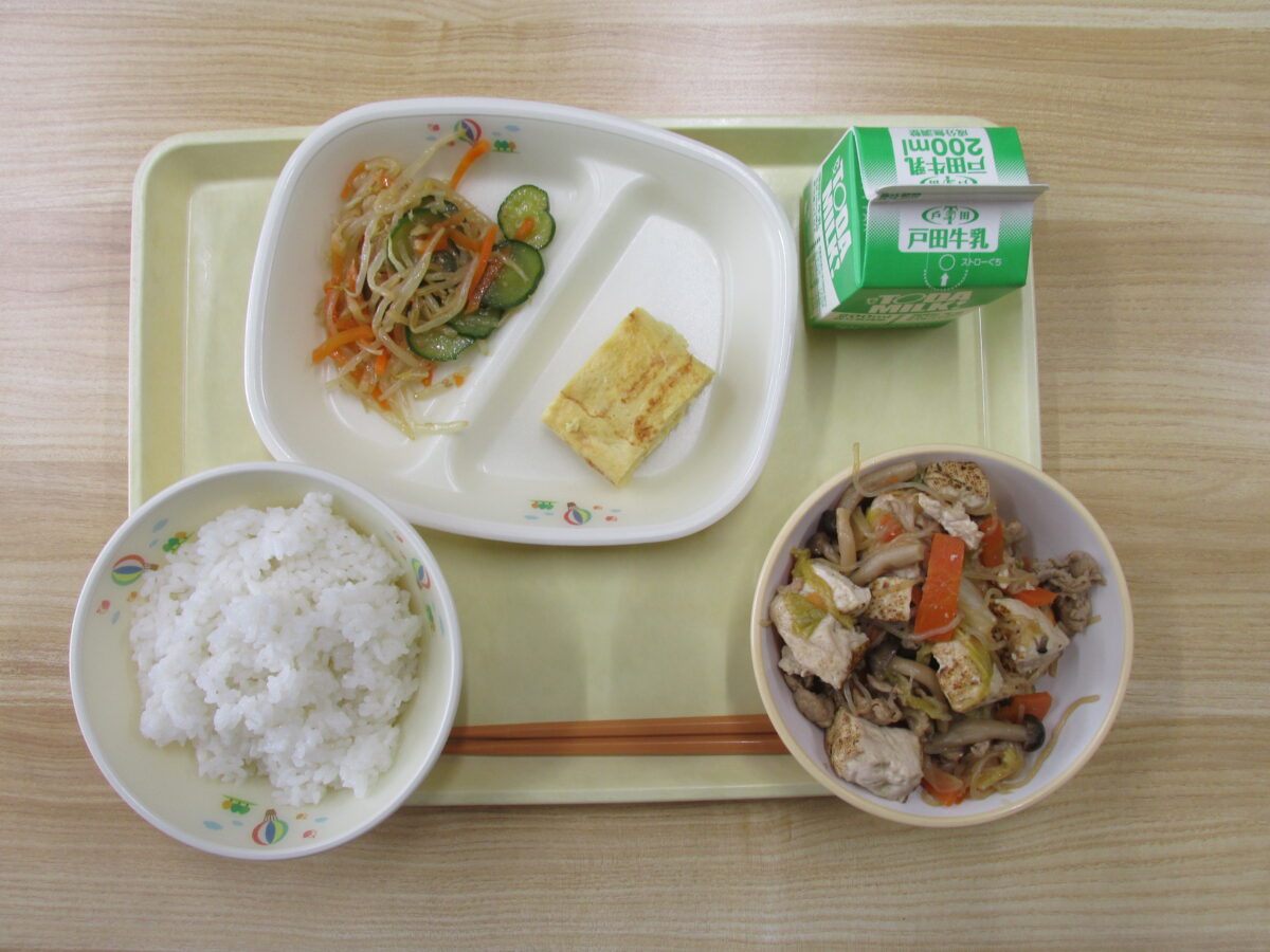 ★ごはん(大田産米)、すき焼き風煮、厚焼き玉子、たくあんあえ、牛乳