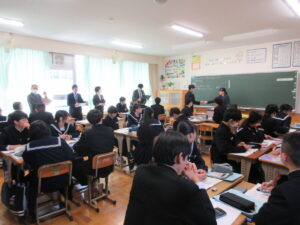 11月7日(木)、埼玉県算数数学教育研究会研究協議会(秩父地区)が本校を会場に行われました。新井沙佳教諭と半藤善正教諭がティーム・ティーチングで3年A組の数学の授業を公開しました。その後、公開した授業を基に授業を参観した先生方で熱心に研究協議が行われました。先生方とともに素晴らしい授業を創り上げてくれた3年A組のみなさん、ありがとうございました。新井教諭・半藤教諭も楽しく授業ができたととても喜んでいました。ご参加くださいました大勢の先生方に感謝申し上げます。
