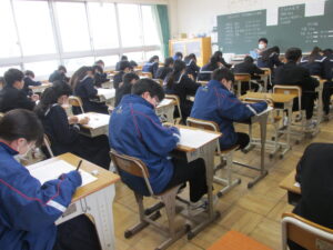 3学期の期末テストが始まりました。2年生は、学級閉鎖の関係により、3月4日5日に延期となったため、本日は1年生のみのテストです。今年度、最後の定期テストです。あと1日、しっかりと準備をしテストに備えてください。