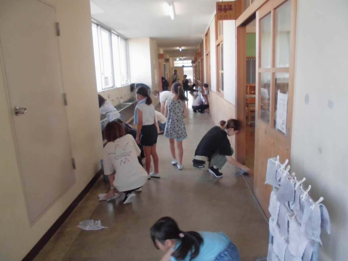 本日は、PTA親子環境整備作業を行いました。完全実施は実に4年ぶりでしたが、PTA会長を中心に、保護者の方々や子供たち、地域の方々の力を集結して、校舎の中や外をぴかぴかにしてもらいました。おかげさまで、気持ちよく2学期の始業式を迎えられます。多くの方々に参加いただきありがとうございました。